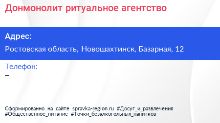 Донмонолит, ритуальное агентство по адресу Ростовская область, Новошахтинск, Базарная, 12 в дальнейшем Организация, размещена в следующих категориях: