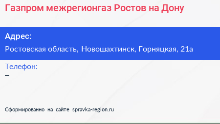 Газпром межрегионгаз Ростов-на-Дону по адресу Ростовская область, Новошахтинск, Горняцкая, 21а в дальнейшем Организация, размещена в следующих категориях: