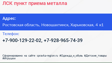 ЛСК, пункт приема металла по адресу Ростовская область, Новошахтинск, Харьковская, 4 к1 в дальнейшем Организация, размещена в следующих категориях: