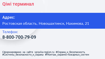 Qiwi, терминал по адресу Ростовская область, Новошахтинск, Нахимова, 21 в дальнейшем Организация, размещена в следующих категориях: