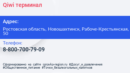 Qiwi, терминал по адресу Ростовская область, Новошахтинск, Рабоче-Крестьянская, 50 в дальнейшем Организация, размещена в следующих категориях: