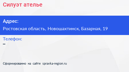 Силуэт, ателье по адресу Ростовская область, Новошахтинск, Базарная, 19 в дальнейшем Организация, размещена в следующих категориях: