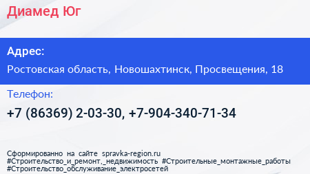 Диамед-Юг по адресу Ростовская область, Новошахтинск, Просвещения, 18 в дальнейшем Организация, размещена в следующих категориях:
