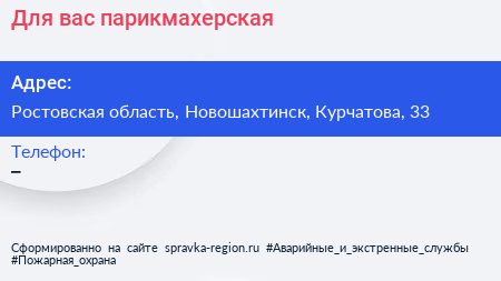 Для вас, парикмахерская по адресу Ростовская область, Новошахтинск, Курчатова, 33 в дальнейшем Организация, размещена в следующих категориях: