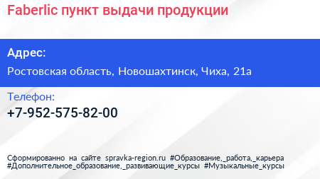 Faberlic, пункт выдачи продукции по адресу Ростовская область, Новошахтинск, Чиха, 21а в дальнейшем Организация, размещена в следующих категориях: