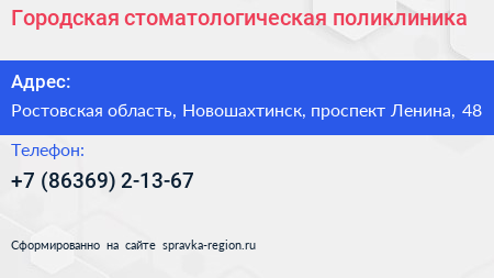 Городская стоматологическая поликлиника по адресу Ростовская область, Новошахтинск, проспект Ленина, 48 в дальнейшем Организация, размещена в следующих категориях: