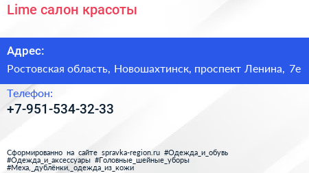 Lime, салон красоты по адресу Ростовская область, Новошахтинск, проспект Ленина, 7е в дальнейшем Организация, размещена в следующих категориях:
