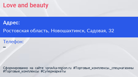 Love and beauty по адресу Ростовская область, Новошахтинск, Садовая, 32 в дальнейшем Организация, размещена в следующих категориях: