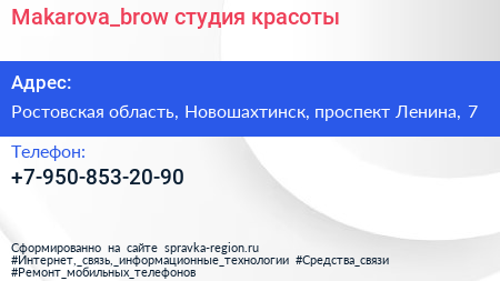 Makarova_brow, студия красоты по адресу Ростовская область, Новошахтинск, проспект Ленина, 7 в дальнейшем Организация, размещена в следующих категориях: