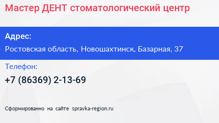 Мастер ДЕНТ, стоматологический центр по адресу Ростовская область, Новошахтинск, Базарная, 37 в дальнейшем Организация, размещена в следующих категориях: