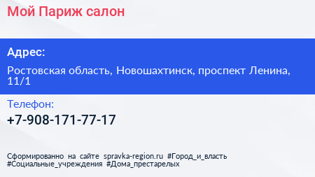 Мой Париж, салон по адресу Ростовская область, Новошахтинск, проспект Ленина, 11/1 в дальнейшем Организация, размещена в следующих категориях: