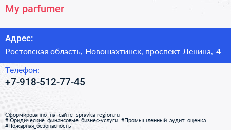 My parfumer по адресу Ростовская область, Новошахтинск, проспект Ленина, 4 в дальнейшем Организация, размещена в следующих категориях: