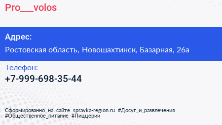 Pro___volos по адресу Ростовская область, Новошахтинск, Базарная, 26а в дальнейшем Организация, размещена в следующих категориях:
