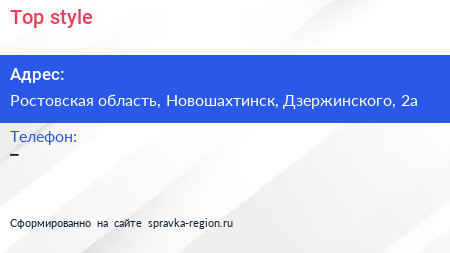 Top style по адресу Ростовская область, Новошахтинск, Дзержинского, 2а в дальнейшем Организация, размещена в следующих категориях: