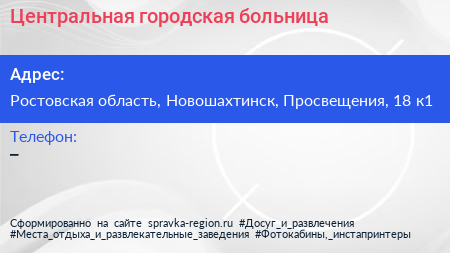 Центральная городская больница по адресу Ростовская область, Новошахтинск, Просвещения, 18 к1 в дальнейшем Организация, размещена в следующих категориях: