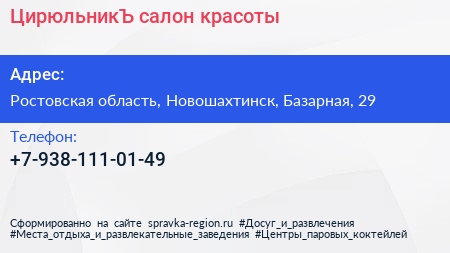 ЦирюльникЪ, салон красоты по адресу Ростовская область, Новошахтинск, Базарная, 29 в дальнейшем Организация, размещена в следующих категориях: