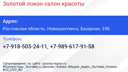 Золотой локон, салон красоты по адресу Ростовская область, Новошахтинск, Базарная, 19Б в дальнейшем Организация, размещена в следующих категориях: