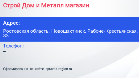 Строй Дом и Металл, магазин по адресу Ростовская область, Новошахтинск, Рабоче-Крестьянская, 33 в дальнейшем Организация, размещена в следующих категориях:
