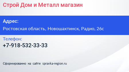Строй Дом и Металл, магазин по адресу Ростовская область, Новошахтинск, Радио, 26с в дальнейшем Организация, размещена в следующих категориях: