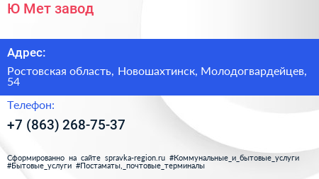 Ю-Мет, завод по адресу Ростовская область, Новошахтинск, Молодогвардейцев, 54 в дальнейшем Организация, размещена в следующих категориях: