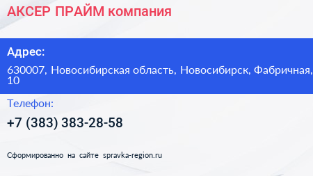 АКСЕР ПРАЙМ, компания по адресу 630007, Новосибирская область, Новосибирск, Фабричная, 10 в дальнейшем Организация, размещена в следующих категориях:
