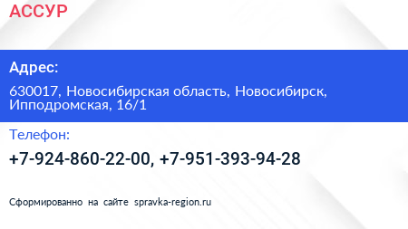 АССУР по адресу 630017, Новосибирская область, Новосибирск, Ипподромская, 16/1 в дальнейшем Организация, размещена в следующих категориях: