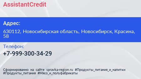AssistantCredit по адресу 630112, Новосибирская область, Новосибирск, Красина, 58 в дальнейшем Организация, размещена в следующих категориях: