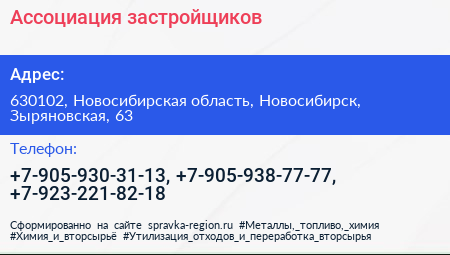 Ассоциация застройщиков по адресу 630102, Новосибирская область, Новосибирск, Зыряновская, 63 в дальнейшем Организация, размещена в следующих категориях:
