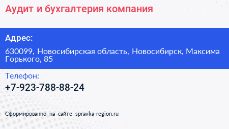 Аудит и бухгалтерия, компания по адресу 630099, Новосибирская область, Новосибирск, Максима Горького, 85 в дальнейшем Организация, размещена в следующих категориях: