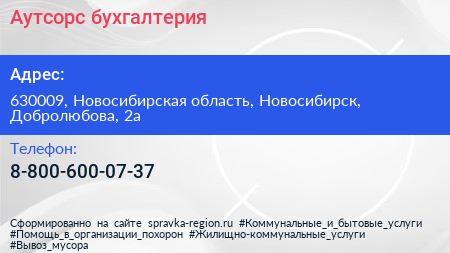 Аутсорс бухгалтерия по адресу 630009, Новосибирская область, Новосибирск, Добролюбова, 2а в дальнейшем Организация, размещена в следующих категориях: