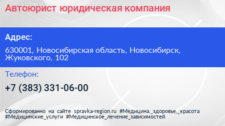 Автоюрист, юридическая компания по адресу 630001, Новосибирская область, Новосибирск, Жуковского, 102 в дальнейшем Организация, размещена в следующих категориях: