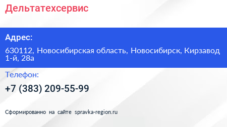 Дельтатехсервис по адресу 630112, Новосибирская область, Новосибирск, Кирзавод 1-й, 28а в дальнейшем Организация, размещена в следующих категориях: