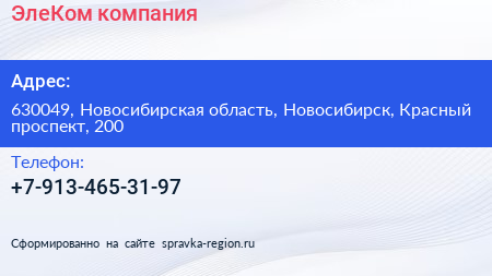 ЭлеКом, компания по адресу 630049, Новосибирская область, Новосибирск, Красный проспект, 200 в дальнейшем Организация, размещена в следующих категориях: