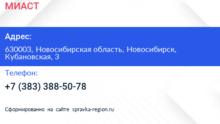 МИАСТ по адресу 630003, Новосибирская область, Новосибирск, Кубановская, 3 в дальнейшем Организация, размещена в следующих категориях: