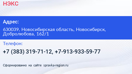 НЭКС по адресу 630039, Новосибирская область, Новосибирск, Добролюбова, 162/1 в дальнейшем Организация, размещена в следующих категориях: