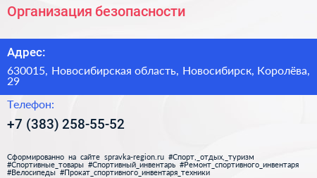 Организация безопасности по адресу 630015, Новосибирская область, Новосибирск, Королёва, 29 в дальнейшем Организация, размещена в следующих категориях: