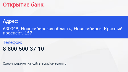 Открытие, банк по адресу 630049, Новосибирская область, Новосибирск, Красный проспект, 157 в дальнейшем Организация, размещена в следующих категориях:
