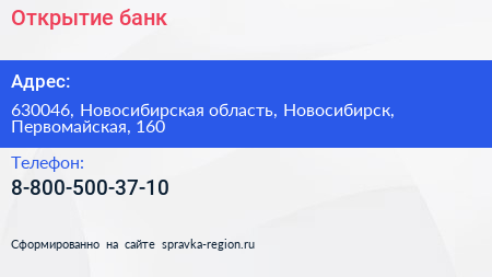 Открытие, банк по адресу 630046, Новосибирская область, Новосибирск, Первомайская, 160 в дальнейшем Организация, размещена в следующих категориях: