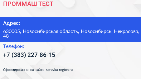 ПРОММАШ ТЕСТ по адресу 630005, Новосибирская область, Новосибирск, Некрасова, 48 в дальнейшем Организация, размещена в следующих категориях: