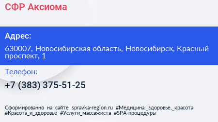 СФР Аксиома по адресу 630007, Новосибирская область, Новосибирск, Красный проспект, 1 в дальнейшем Организация, размещена в следующих категориях: