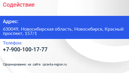 Содействие по адресу 630049, Новосибирская область, Новосибирск, Красный проспект, 157/1 в дальнейшем Организация, размещена в следующих категориях: