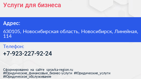 Услуги для бизнеса по адресу 630105, Новосибирская область, Новосибирск, Линейная, 114 в дальнейшем Организация, размещена в следующих категориях: