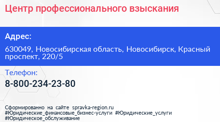 Центр профессионального взыскания по адресу 630049, Новосибирская область, Новосибирск, Красный проспект, 220/5 в дальнейшем Организация, размещена в следующих категориях:
