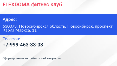 FLEXDOMA, фитнес-клуб по адресу 630073, Новосибирская область, Новосибирск, проспект Карла Маркса, 11 в дальнейшем Организация, размещена в следующих категориях: