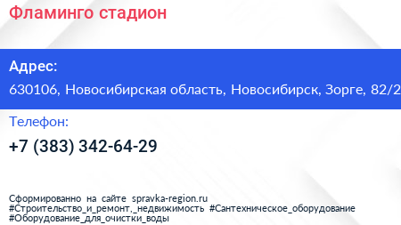 Фламинго, стадион по адресу 630106, Новосибирская область, Новосибирск, Зорге, 82/2 в дальнейшем Организация, размещена в следующих категориях: