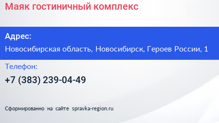 Маяк, гостиничный комплекс по адресу Новосибирская область, Новосибирск, Героев России, 1 в дальнейшем Организация, размещена в следующих категориях: