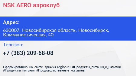NSK.AERO, аэроклуб по адресу 630007, Новосибирская область, Новосибирск, Коммунистическая, 40 в дальнейшем Организация, размещена в следующих категориях: