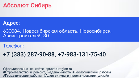 Абсолют Сибирь по адресу 630084, Новосибирская область, Новосибирск, Авиастроителей, 30 в дальнейшем Организация, размещена в следующих категориях: