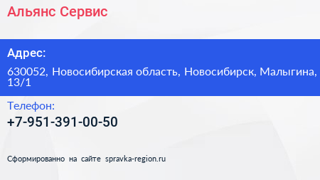 Альянс Сервис по адресу 630052, Новосибирская область, Новосибирск, Малыгина, 13/1 в дальнейшем Организация, размещена в следующих категориях: