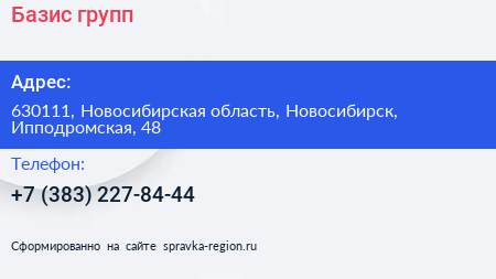 Базис групп по адресу 630111, Новосибирская область, Новосибирск, Ипподромская, 48 в дальнейшем Организация, размещена в следующих категориях: